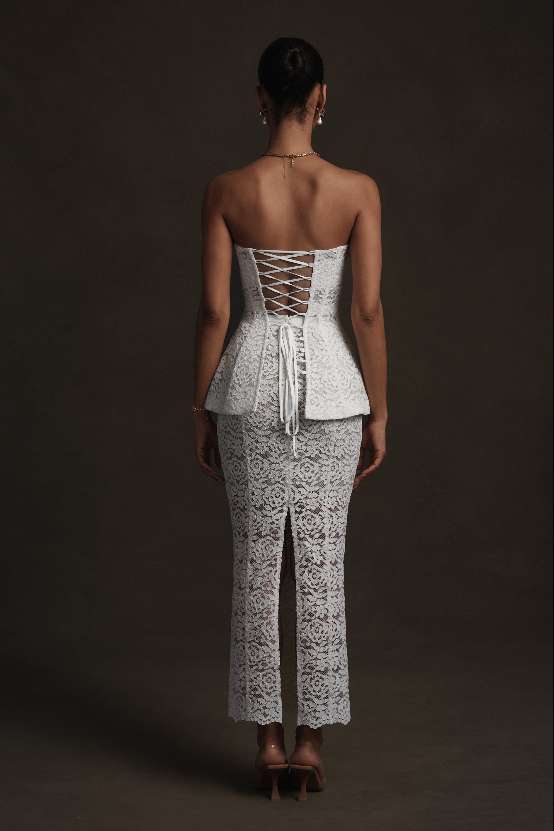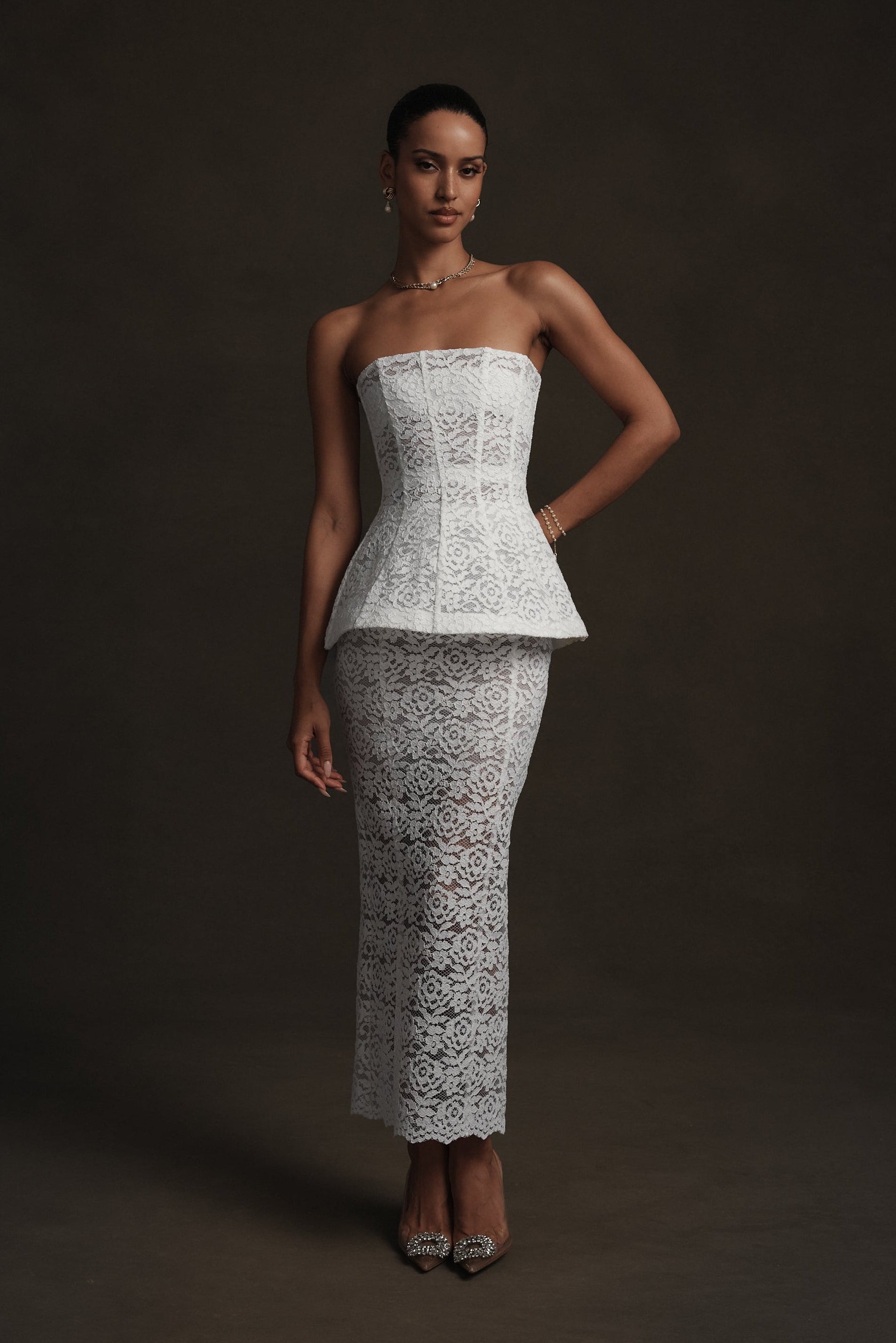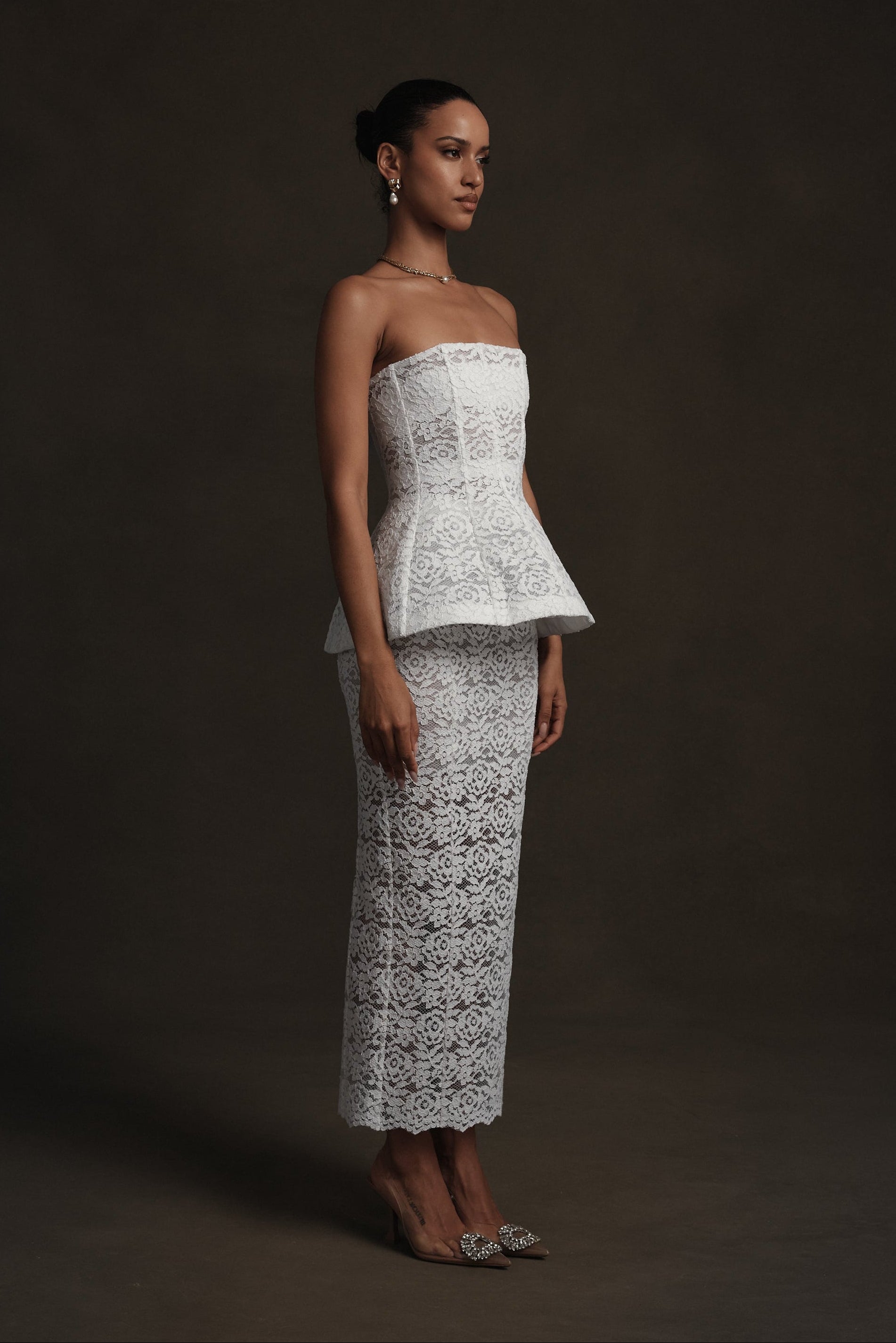 Meet Piper! She's ankle-length pencil skirt crafted in delicate White Rose Lace with intricate floral detailing. Designed to sit at the waist, it skims the body with subtle structure and is finished with a back slit for ease and elegance. Pair her with The Piper Top for an effortlessly chic look.
