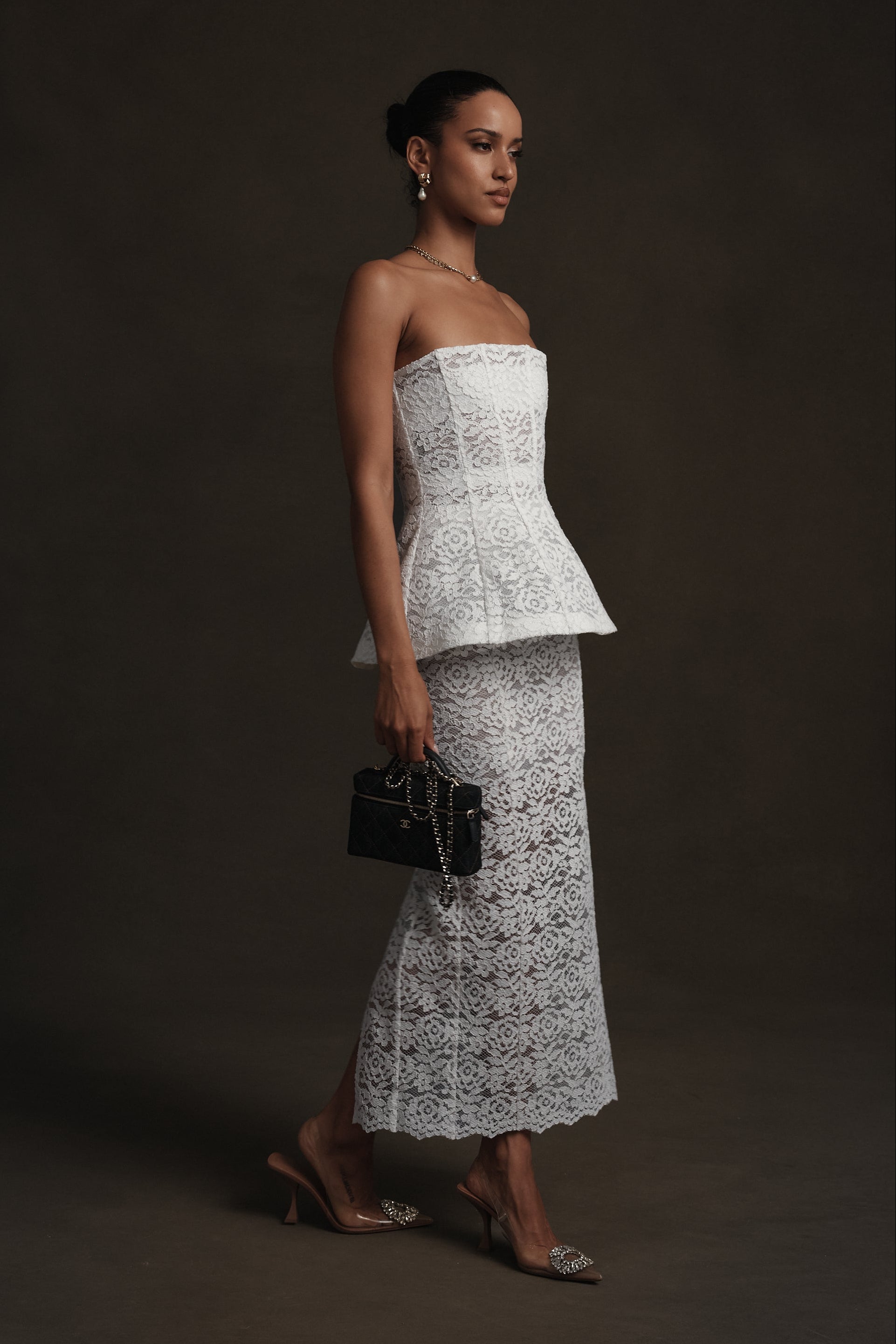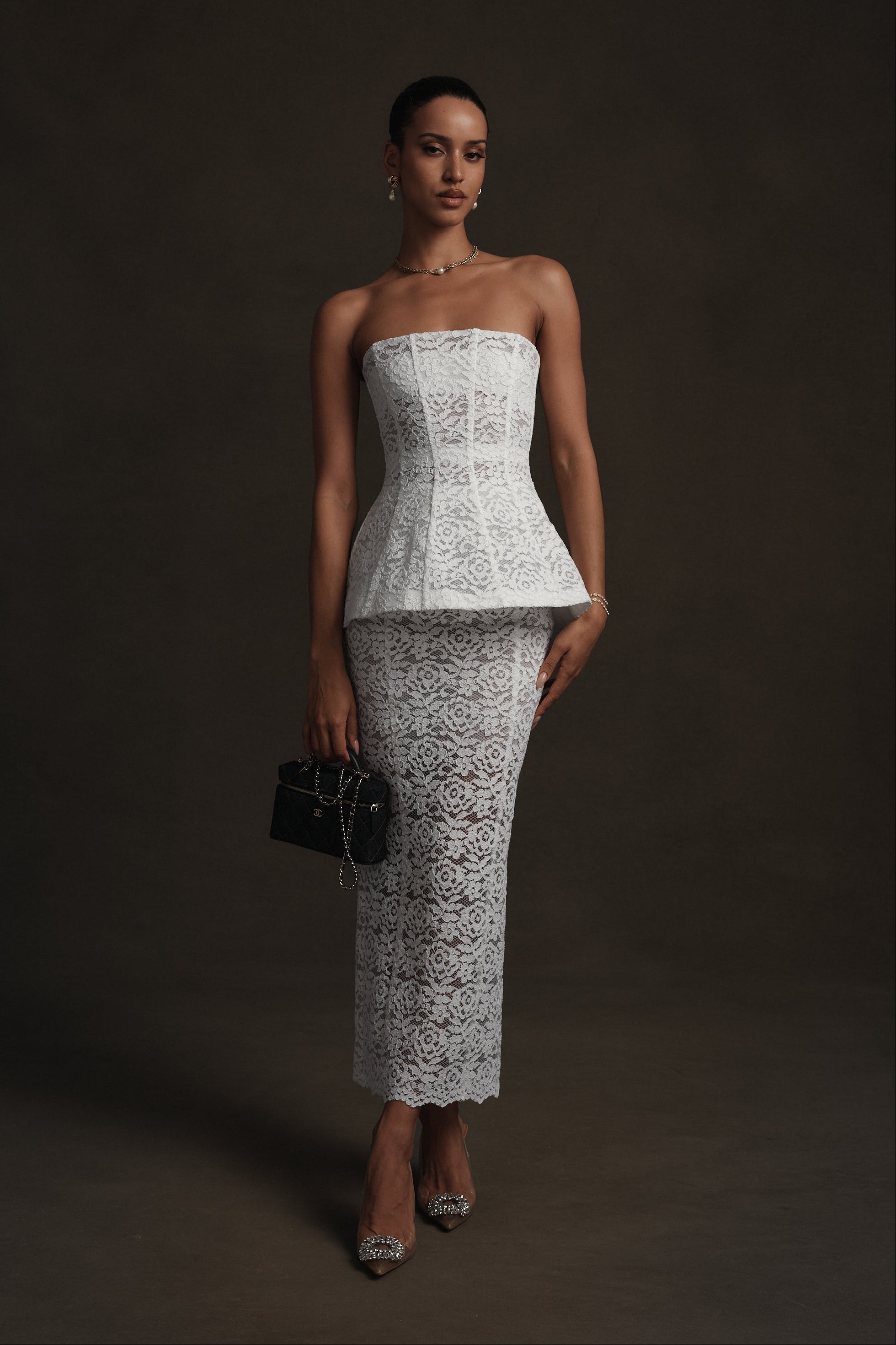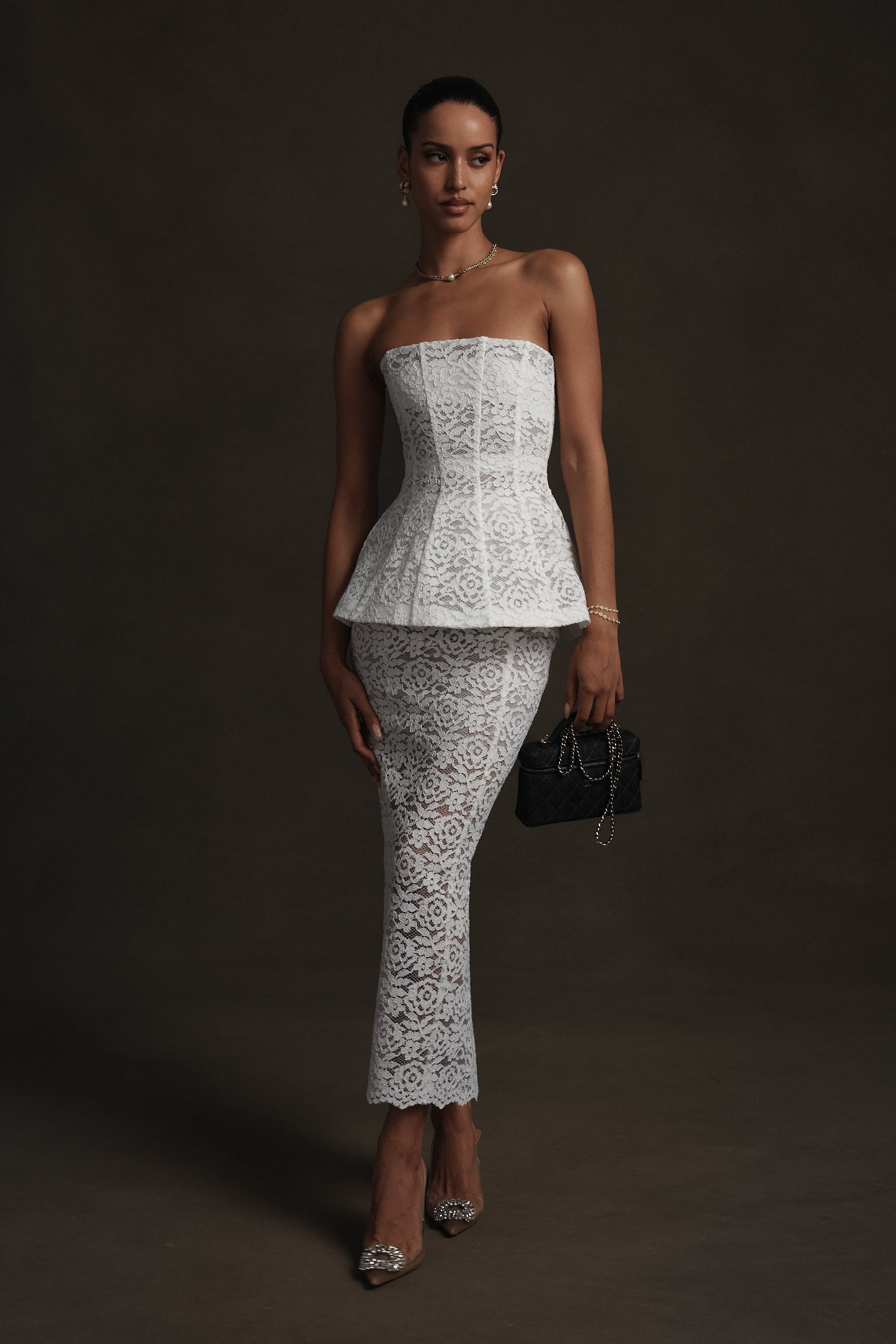 Meet Piper! She's ankle-length pencil skirt crafted in delicate White Rose Lace with intricate floral detailing. Designed to sit at the waist, it skims the body with subtle structure and is finished with a back slit for ease and elegance. Pair her with The Piper Top for an effortlessly chic look.