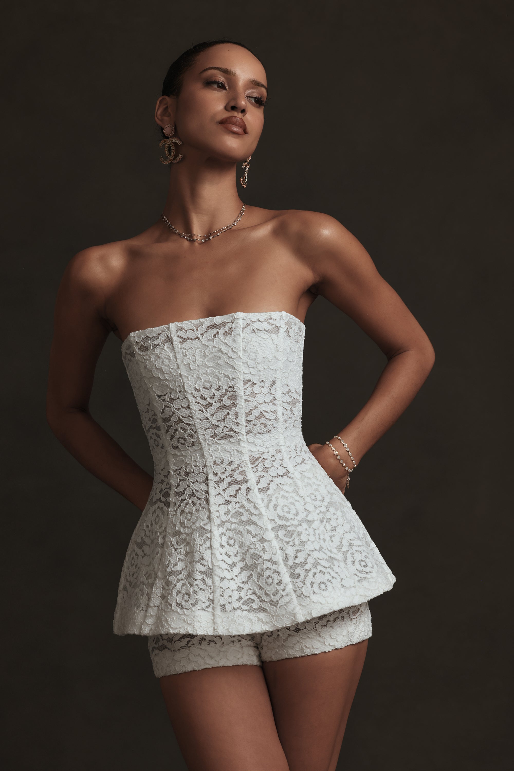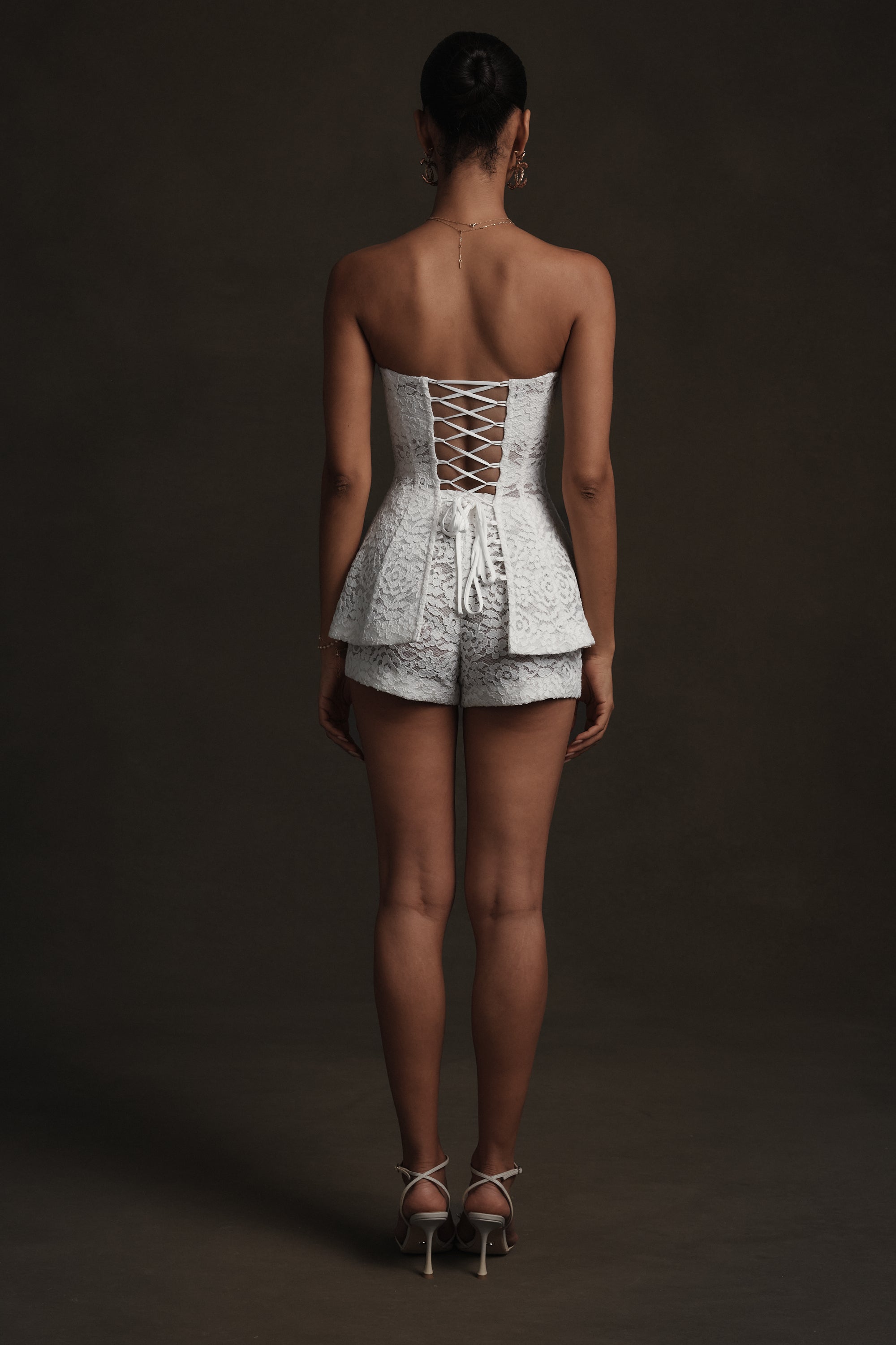 The Romeo Short is a high-waisted lace short with a romantic, softly tailored silhouette. Crafted in delicate White Rose Lace with intricate floral detailing, it features subtle front pleats and is fully lined in sheer tulle for lightweight comfort and coverage. Polished yet feminine, Romeo pairs effortlessly with The Rebecca Top for an elevated day-to-night look.